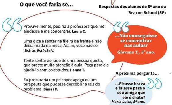 “Provavelmente, pediria à professora que me ajudasse a me concentrar.” (Laura C.)