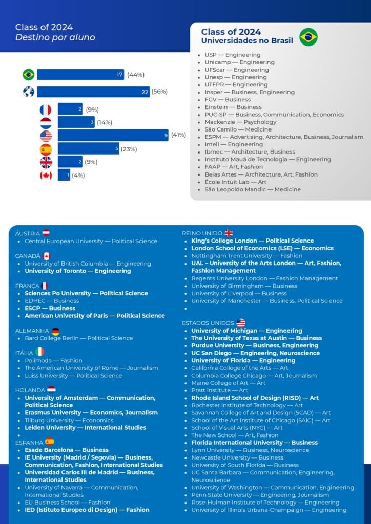 internacional com identidade brasileira, entre os estudantes da Class of 2024,