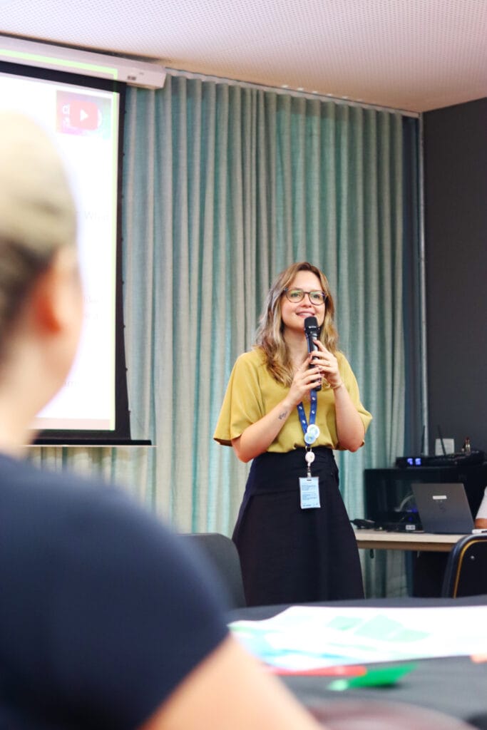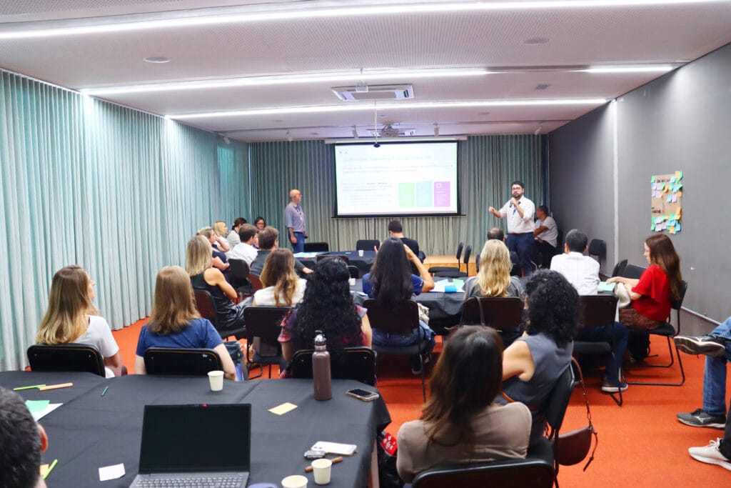 O encontro convidou os participantes a vivenciar a própria experiência de aprendizagem que promovemos com os alunos: investigar, refletir, trocar ideias e construir significados coletivamente.