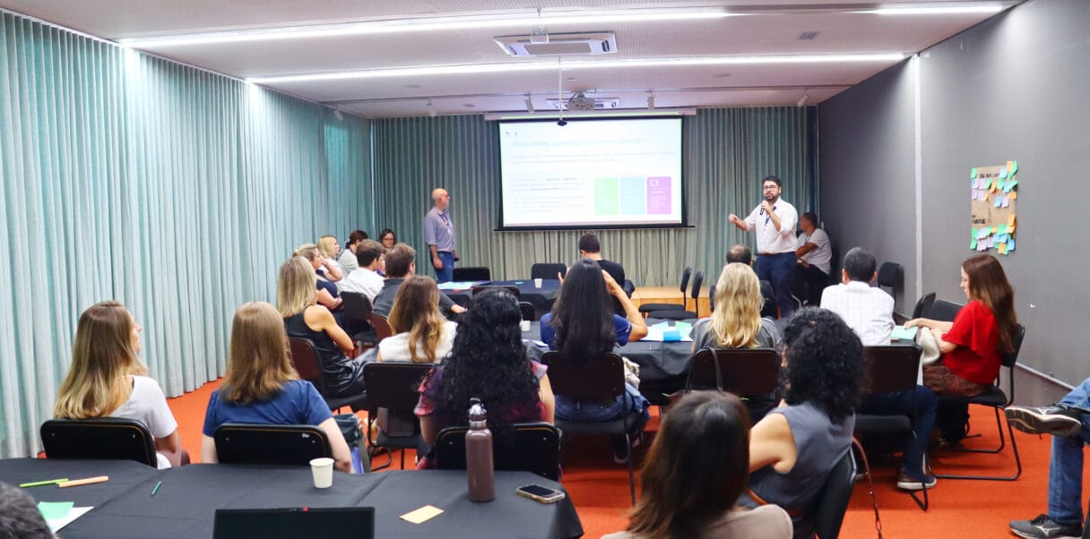 Essa reflexão nos levou a explorar a diferença entre uma cultura tradicional, centrada em resultados, notas e memorização, e uma cultura de aprendizagem, que valoriza o processo, a investigação e o pensamento crítico. Com isso, o erro deixa de ser visto como falha e passa a ser entendido como parte fundamental do desenvolvimento, abrindo espaço para a construção de conhecimento com significado.