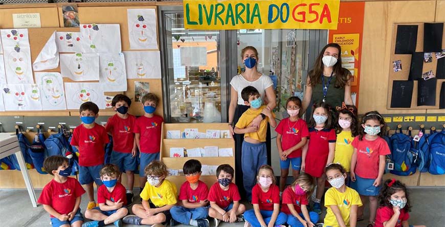 No segundo semestre, as crianças de G5 começaram um projeto de escrita de livros. Nas conversas durante as aulas de Língua Portuguesa e Cultura Brasileira, as turmas inicialmente identificaram as suas características – capa, que a história tem começo, meio e fim, autor e editora.