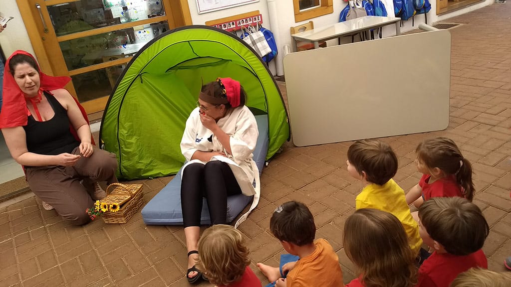 À medida que as histórias são apresentadas, as professoras trazem também, às crianças, o universo teatral. No mês passado, elas puderam se divertir com a encenação de “Os Três Porquinhos”. Esta semana foi a vez de “Chapeuzinho Vermelho” e ainda teremos pela frente “Cachinhos Dourados”!