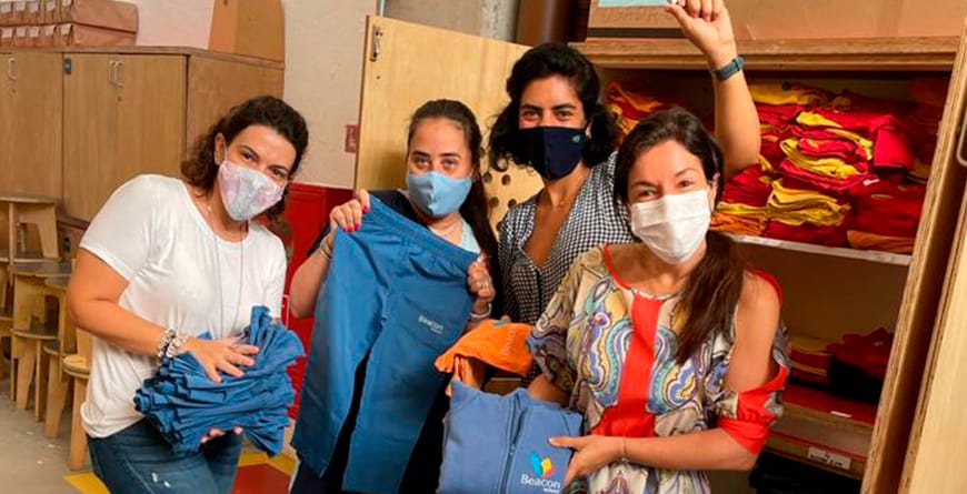 Os novos alunos do G2 e G3, que ingressarão na Beacon no próximo semestre, irão receber a mochila da escola contendo um kit de roupas e uma mensagem em papel reciclado sobre os valores de sustentabilidade da escola. No início do segundo semestre será divulgado mais informações sobre a disponibilidade de peças para todos os alunos que precisarem.