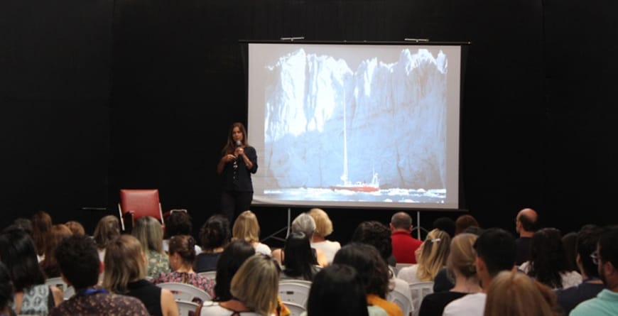 Em um bate papo informal, a palestrante Marina Klink conversou sobre viagens, o prazer de explorarmos a natureza e a falta de conexão atual que ocorre por conta das mídias digitais.