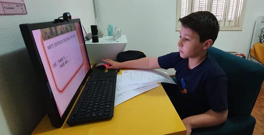 Com o momento da pandemia, muitas editoras importadas, como a de Oxford, liberaram o acesso ao seu acervo de livros online. Então todo final de semana, os alunos devem acessar a plataforma e selecionar a opção de ler o livro por meio de um vídeo com legenda, para que assim possam treinar a leitura e a audição ao mesmo tempo. Na semana seguinte, eles desenvolvem uma atividade relacionada com a história abordada.