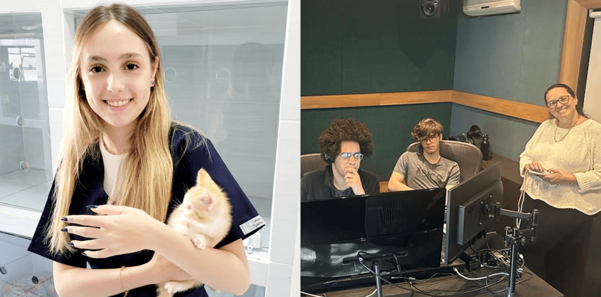 Nas fotos, as alunas Clara C. e Gabriela P. conhecem e participam do trabalho na Clínica Veterinária Dr Oz, junto com a responsável Fernanda Fazio. Já os alunos Bernardo G. (Year 11) e Thiago N. (Year 12), através da viabilização de Flávia e Ruben Feffer, conheceram na prática a rotina e o trabalho da Ultrassom Music Ideas, empresa de criação, produção musical e pós-produção de áudio. Por fim, os estudantes Beacon Gisele S. (Year 11) e Rafael S. (Year 10) acompanharam de perto a agenda do ortopedista Luis Eduardo Tirico.