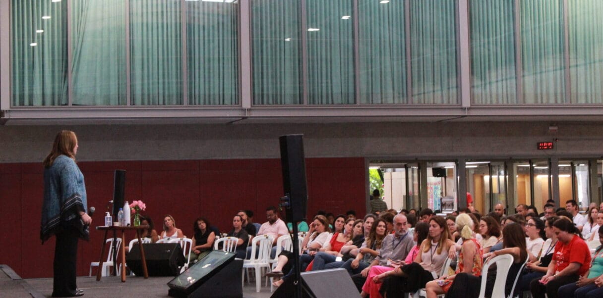 Além de fazer uma vistoria técnica em nossas unidades, inclusive no novo prédio do Ensino Médio para identificar pontos de vulnerabilidade, Katia apresentou a questão dos limites e como mantê-los de maneira saudável no ambiente escolar. Toques, abraços, gestos que podem ou devem ser evitados, maneiras que agem os potenciais abusadores e quando devemos ficar alertas, como as redes sociais expõem a criança e o adolescente, atividades sensíveis do cotidiano, dentre outros tópicos que junto a dinâmicas conscientizou os participantes.