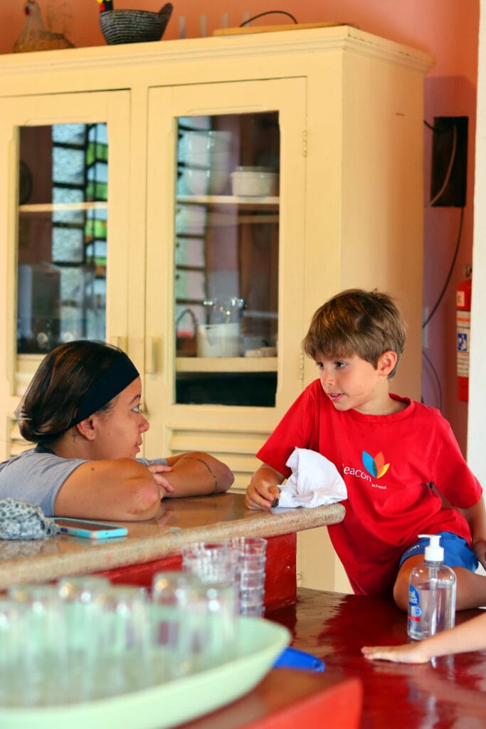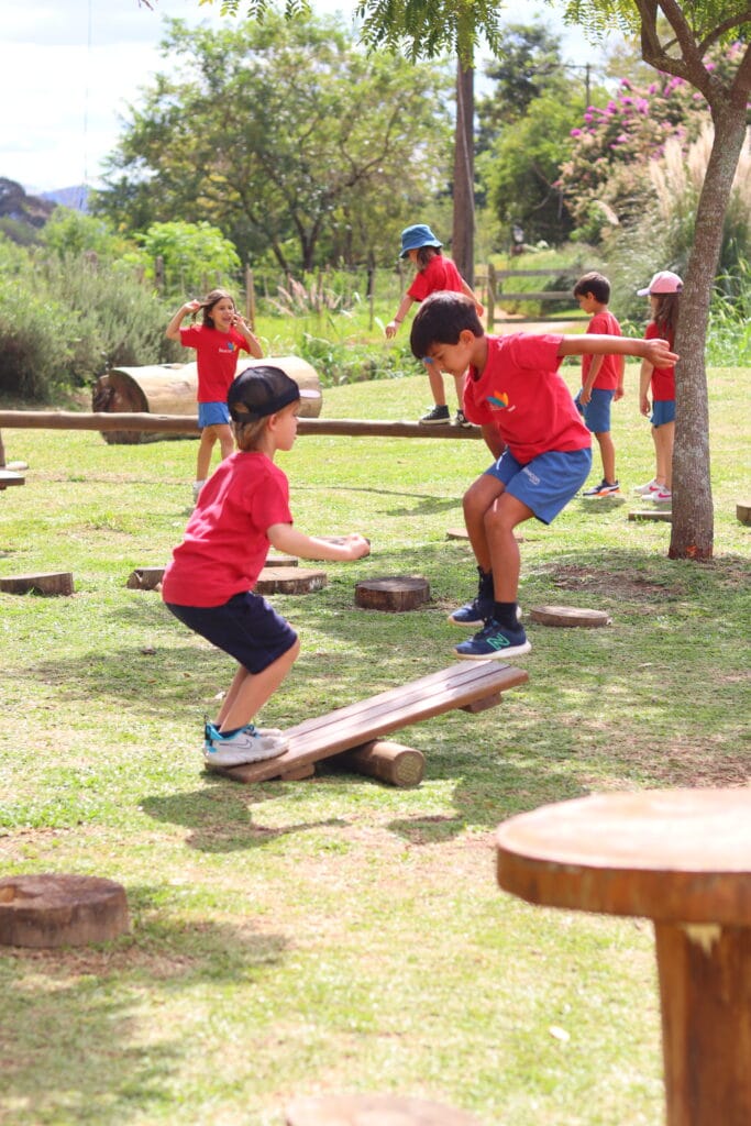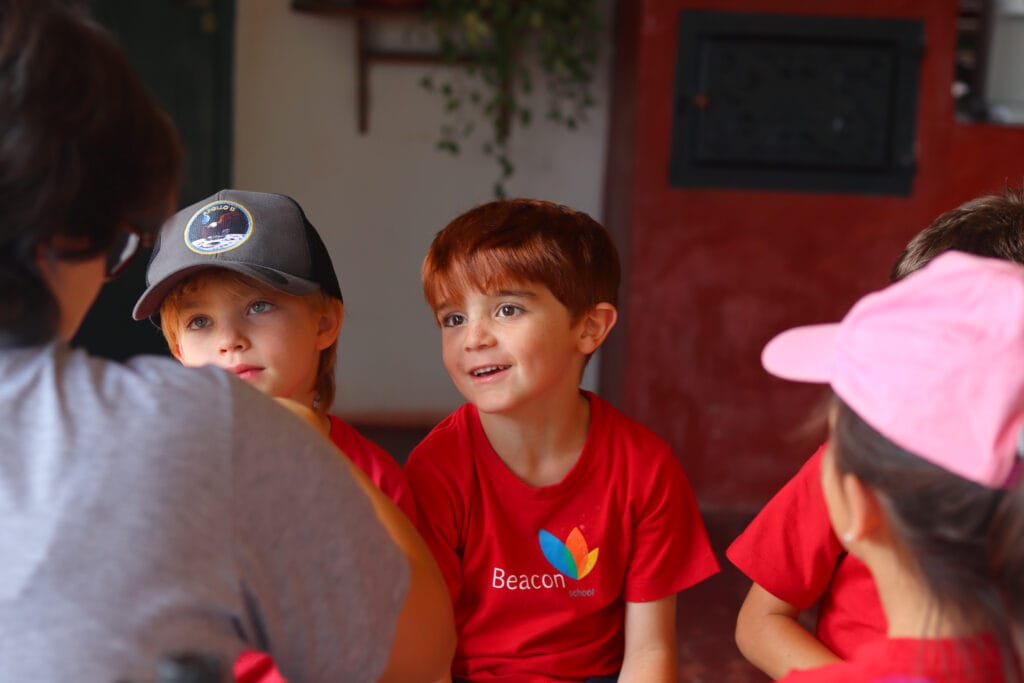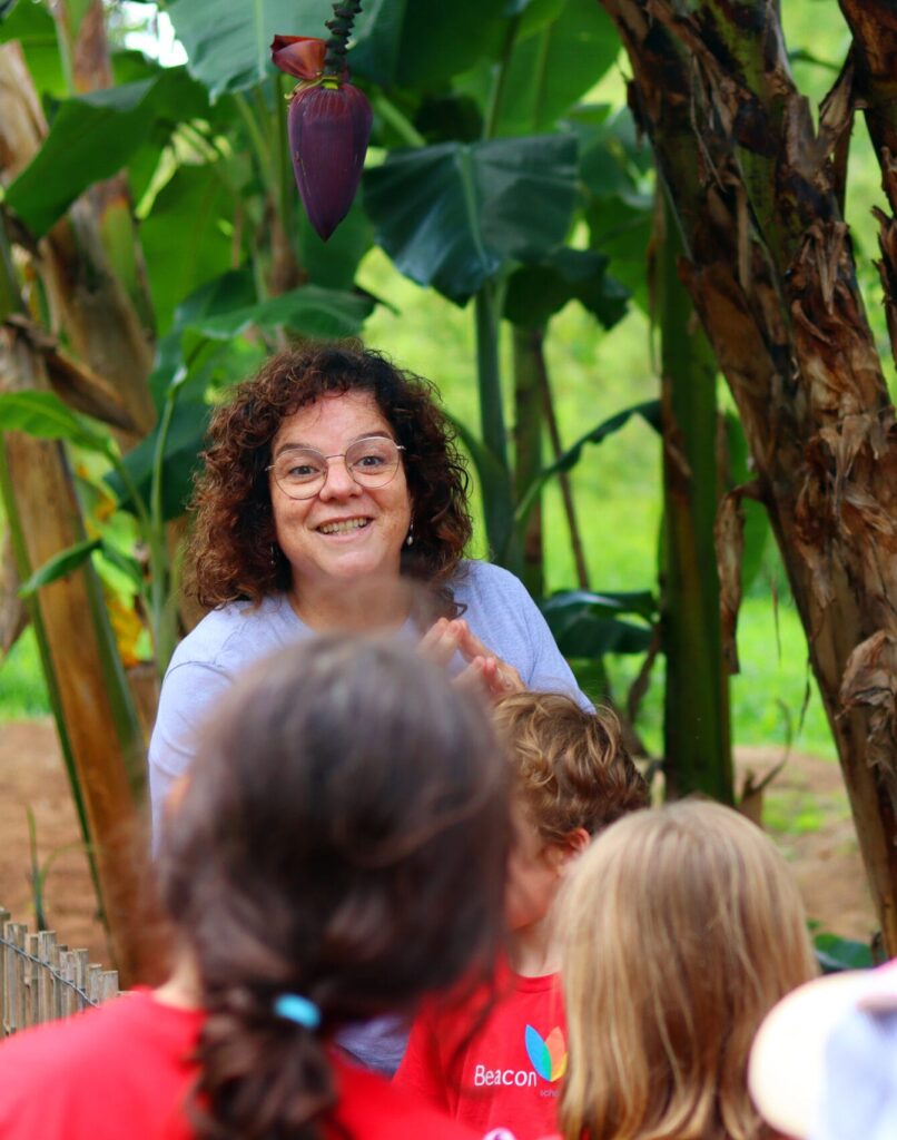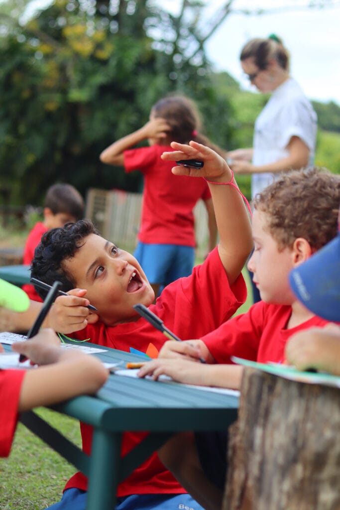 Durante a visita, as crianças participaram de um passeio guiado pelo espaço e puderam observar como funciona uma escola em ambiente rural, comparando sua estrutura e rotina com as da Beacon. Aplicando habilidades de pesquisa, os alunos entrevistaram funcionários para conhecer melhor as funções e responsabilidades de alguns membros da equipe da escola. A visita também retomou conceitos da Unidade “Play” ao oferecer às crianças novas formas de brincar em um ambiente aberto e natural. As atividades ao ar livre estimularam a criatividade e promoveram interações significativas com os elementos da natureza.