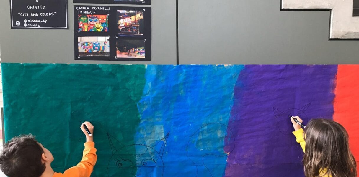Extended Day groups invited parents to visit the end of semester exhibition. Inspired by urban art of some artists, G5, G6, and Elementary School students (5 to 11 years old) brought color to the Campus spaces. The G2 to G4 children (2 to 4 years old) explored natural elements and their characteristics, serving as inspiration and material for the development of activities such as painting, collage, and drawing.