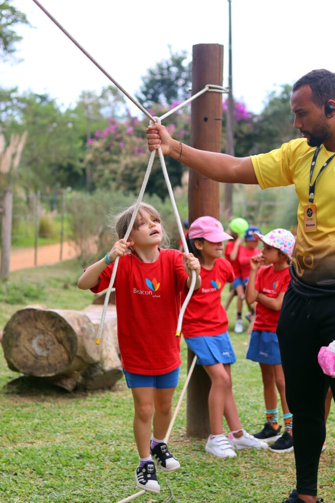 During the visit, the children participated in a guided tour and observed how a school functions in a rural setting, comparing its structure and routine with those at Beacon. Applying their research skills, they interviewed staff members to learn more about the roles and responsibilities of some team members at the school. The visit also revisited concepts from the previous unit, “Play,” by offering the children new ways to play in an open, natural environment. The outdoor activities stimulated creativity and encouraged meaningful interactions with natural elements.