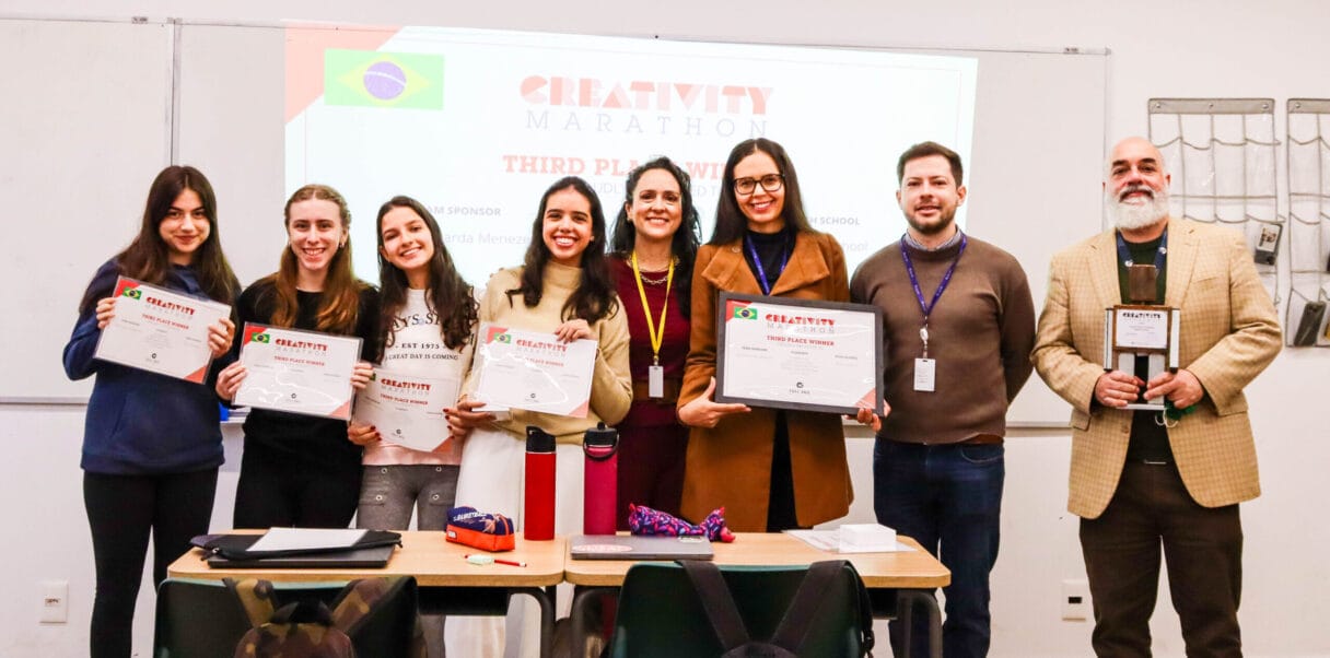 Five Year 10 students, Julia M., Maria Paula T., Isabela C., Livia M., and Luiza F., received the national third place award in the Creativity Marathon, organized by Full Sail University in Orlando, USA. These students autonomously developed a video proposing sustainability solutions. More than a thousand students participated in the competition. The university representative, Carol Olival, was at Beacon to personally deliver the award certificate and trophy. Competitions like this develop various skills, strengthen our students’ resumes, and present higher education options to our community.