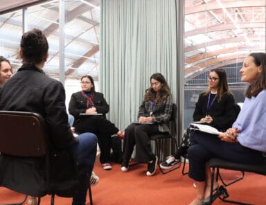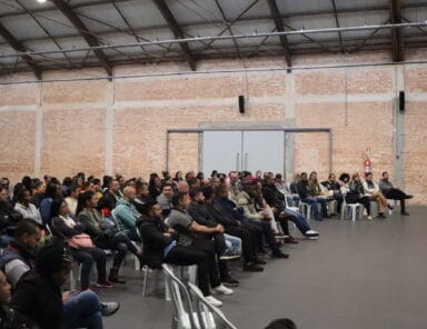 Estagiários e aprendizes participam de um bate-papo com as diretoras