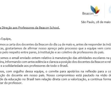 Carta aberta dos docentes da Beacon School à comunidade